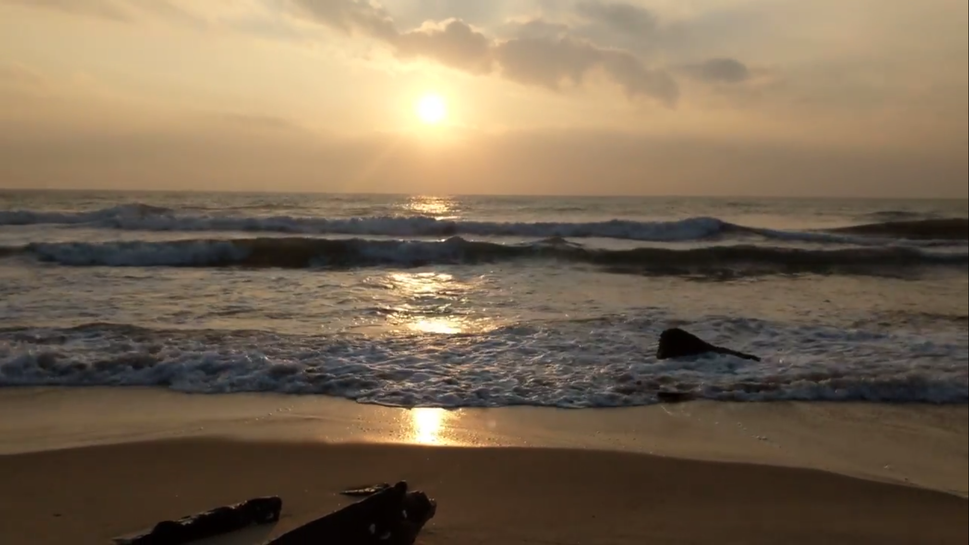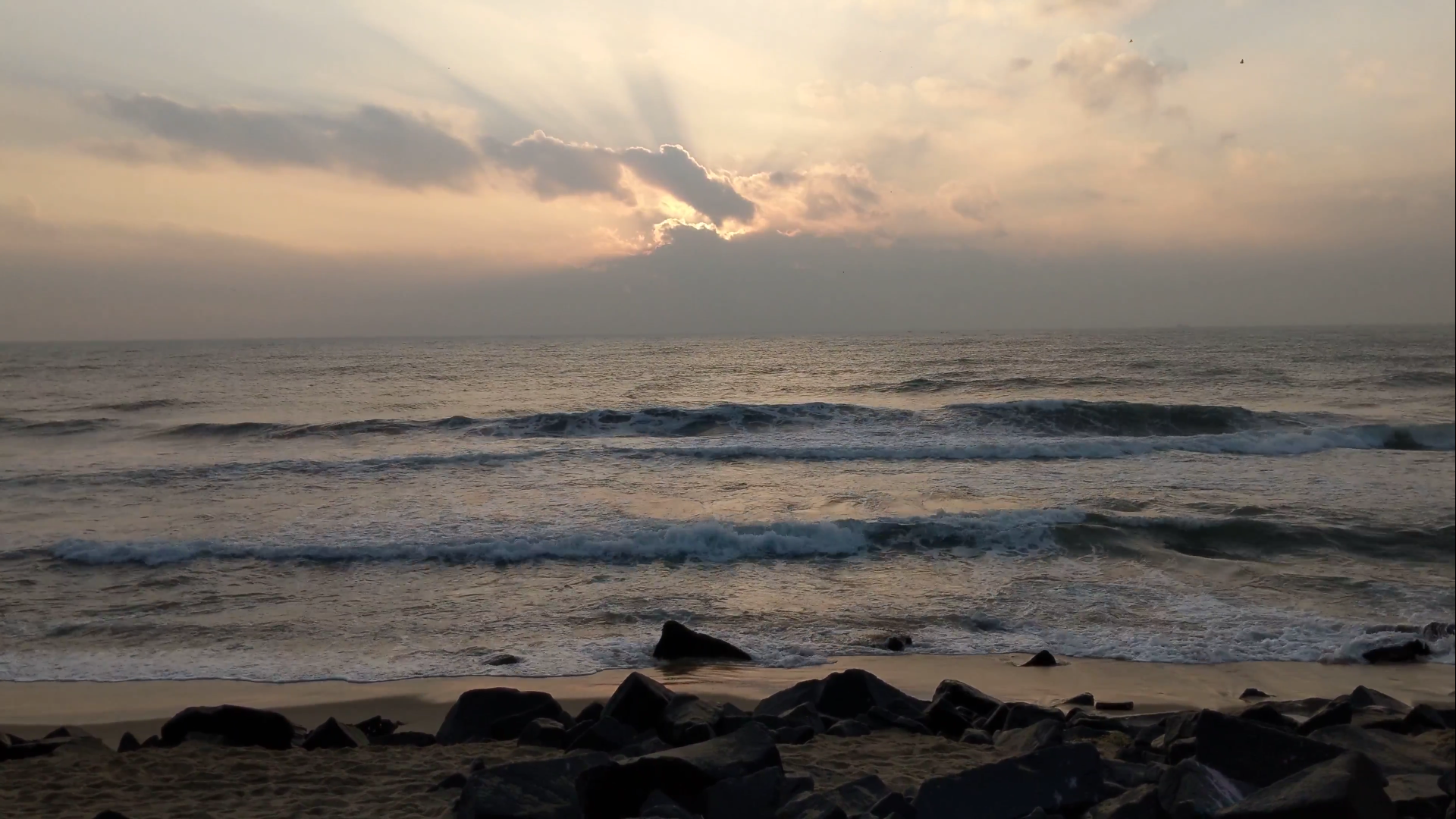I was up before even my alarm rang. It was around 4.10 am. Got ready to head towards the beach by my bicycle and made it to the beach by 5.15 am. The sky was still dim. I sat on the rocks there looking up into the sky filled with clouds swirling above me waiting for the sun to rise. All I could see there were few people at a distance jogging, walking out dogs adding vitality to the place. In no time the whole landscape was bathed in the warm glow of the rising sun. Palm trees swayed gently in the breeze in the warm tropical sunshine. The entire place looked gorgeous and rejuvenating. Sometimes, to indulge in the beauty of the place in the early morning hours is the best therapy of all out there.