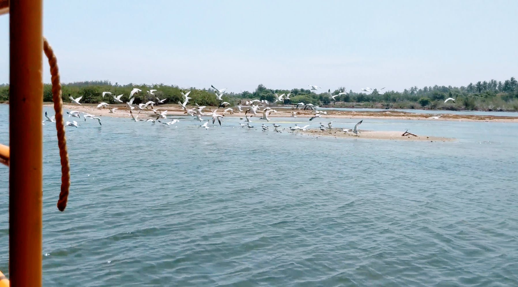 I had planned to visit Paradise beach on a weekday to avoid the crowd and to make the best use of the time there. And it was Monday. I rode to Chunnambar and bought myself a ticket for Rs.150 to get to the paradise beach. It was a 20 to 25 mins ferry ride to the beautiful island. The backwaters on the way to the beach are green giving you some amazing view of the place. I also spotted a lot of birds while on the ride to the beach.